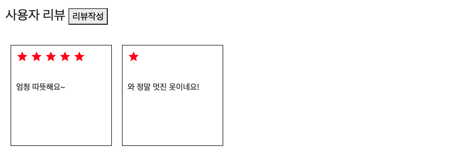 리뷰 등록 아래에 카드 형태로 리뷰가 표시되도록 설정합니다.