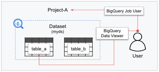 위 Query가 실행되기 위해 필요한 권한을 '데이터 조회'와 'Job 실행' 관점에서 분리하여 생각해봅니다.